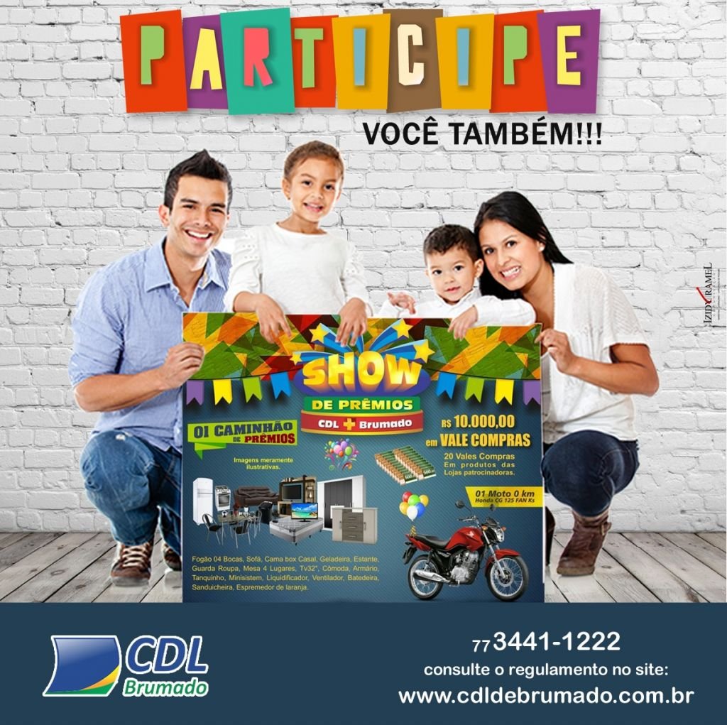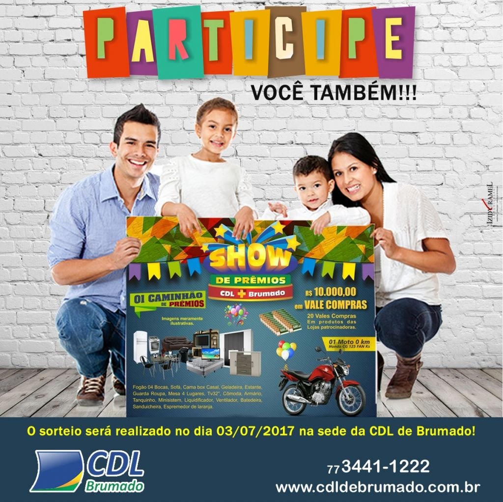 Então, não perca a grande oportunidade de comprar nas lojas associadas à Câmra de Dirigentes Lojistas de Brumado e além de excelentes produtos e preços, ainda concorrer a tantos prêmios, afinal, a campanha Campanha Show de Prêmios CDL + Brumado 2017 está a todo vapor!