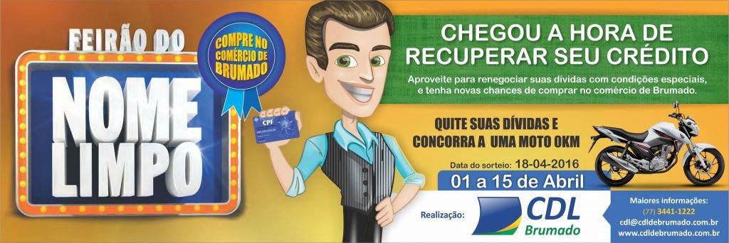 A Câmara de Dirigentes Lojistas de Brumado (CDL) lançou no mercado de Brumado a ação que acontecerá no período de 01 a 15/04/2016 denominada Feirão Nome Limpo!