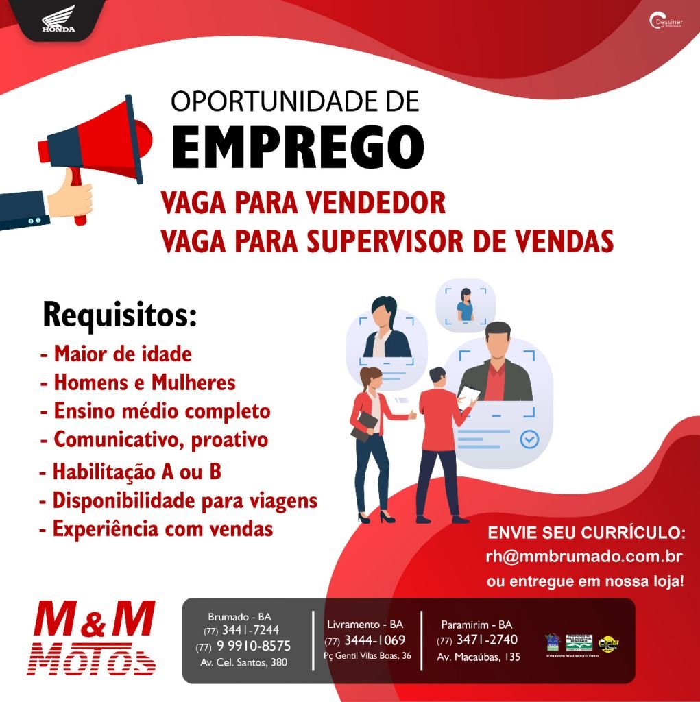 A M & M Motos está contratando. Aproveite essa oportunidade!